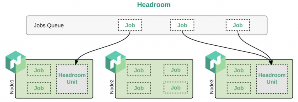 A buffer of spare capacity (in terms of both memory and CPU) to make sure that when we want to scale more jobs, we don't have to wait for new instances, and also to prevent instances from being over-utilized.