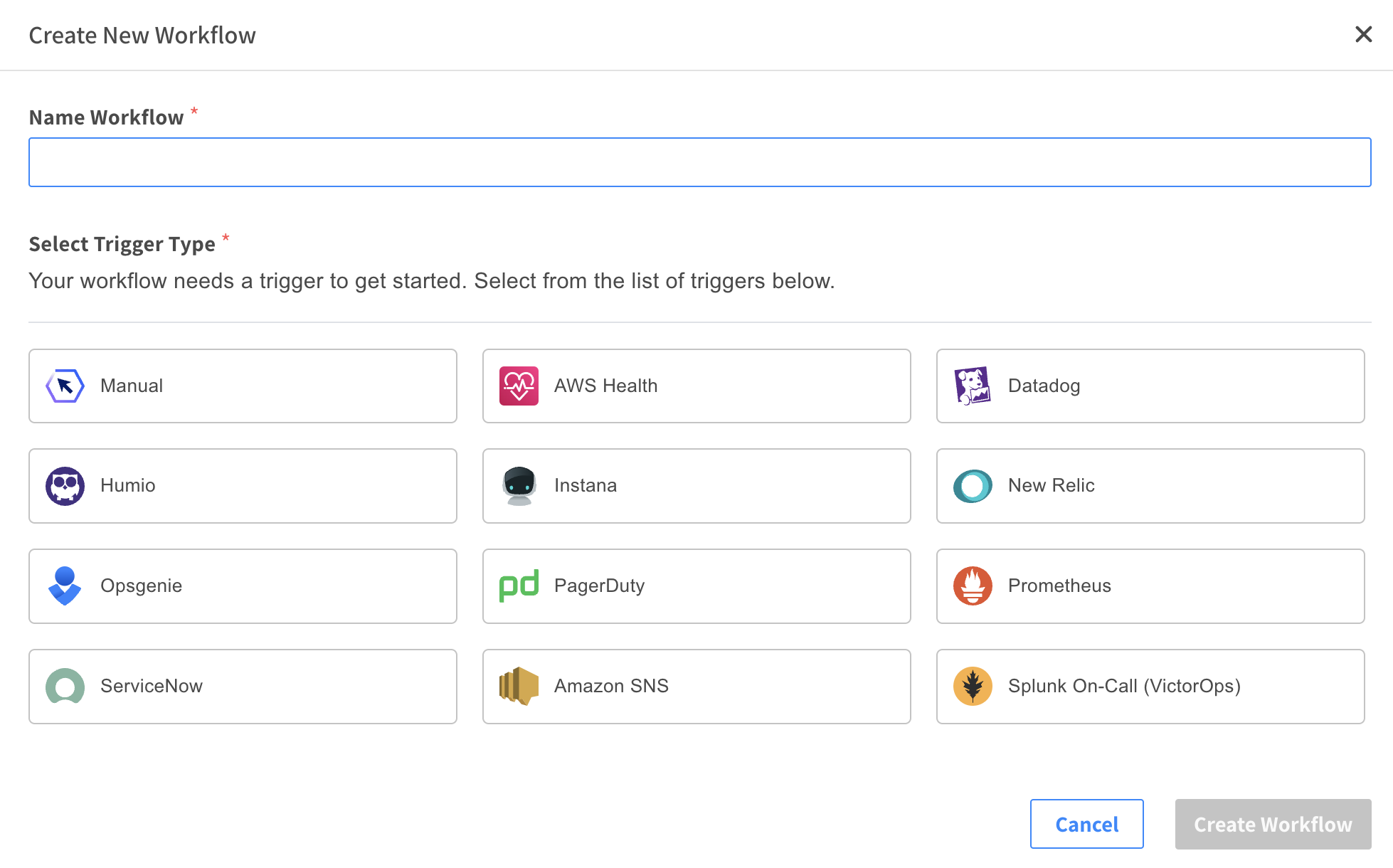 3. Select AWS Health Trigger > Create Workflow.